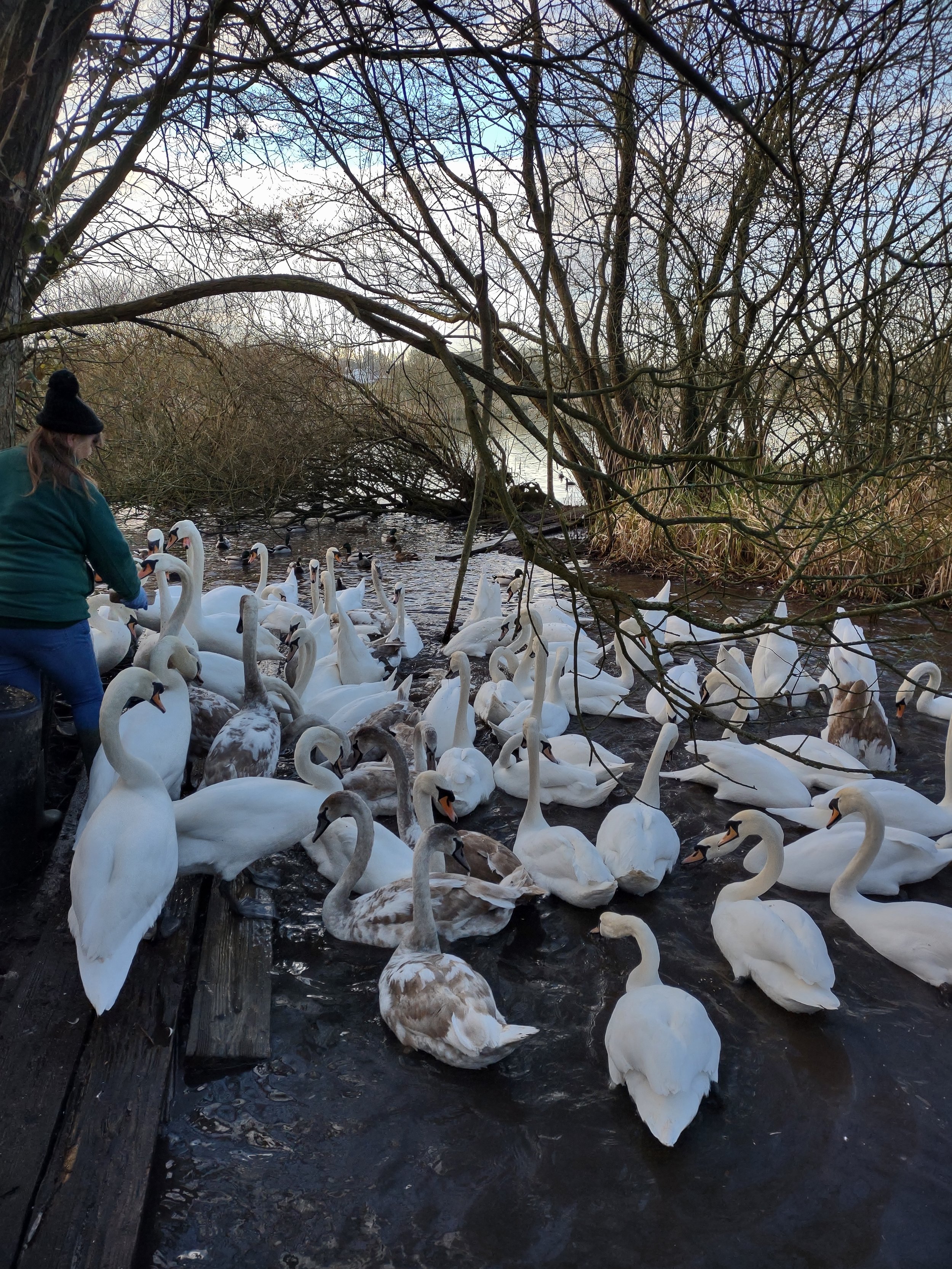 Penny Feeding the Swans and their young on Alresford Pond